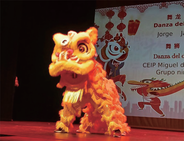 舞龙舞狮表演震撼全场。(图片来源:本文图片均由西班牙安达卢西亚大区孔子课堂提供)