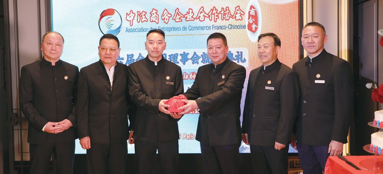 【欧洲时报记者黄冠杰巴黎报道】中法商务企业合作协会(以下简称商合会)第六届会长团就职典礼暨商会成立16周年庆典3月23日晚在巴黎幸福楼举行。何品隆接棒陈剑靖就任第六届会长团会长。新一届会长团包括执行会长杨进乐、第-副会长何君勇、秘书长孙增培、财务长陈建岳、监事长刘显淼、妇女主任李舒、中文学校校长张郑达等。一批年轻力量登上舞台。中国驻法使馆领侨处副主任王立,法国参议员雷米·费罗,法国维勒潘特市市长玛蒂娜·瓦勒顿(Martine Valleton),复星集团法国执行首席代表朱剑逸等嘉宾,法国华侨华人会第一副主席丁仕定等侨团代表到会祝贺。