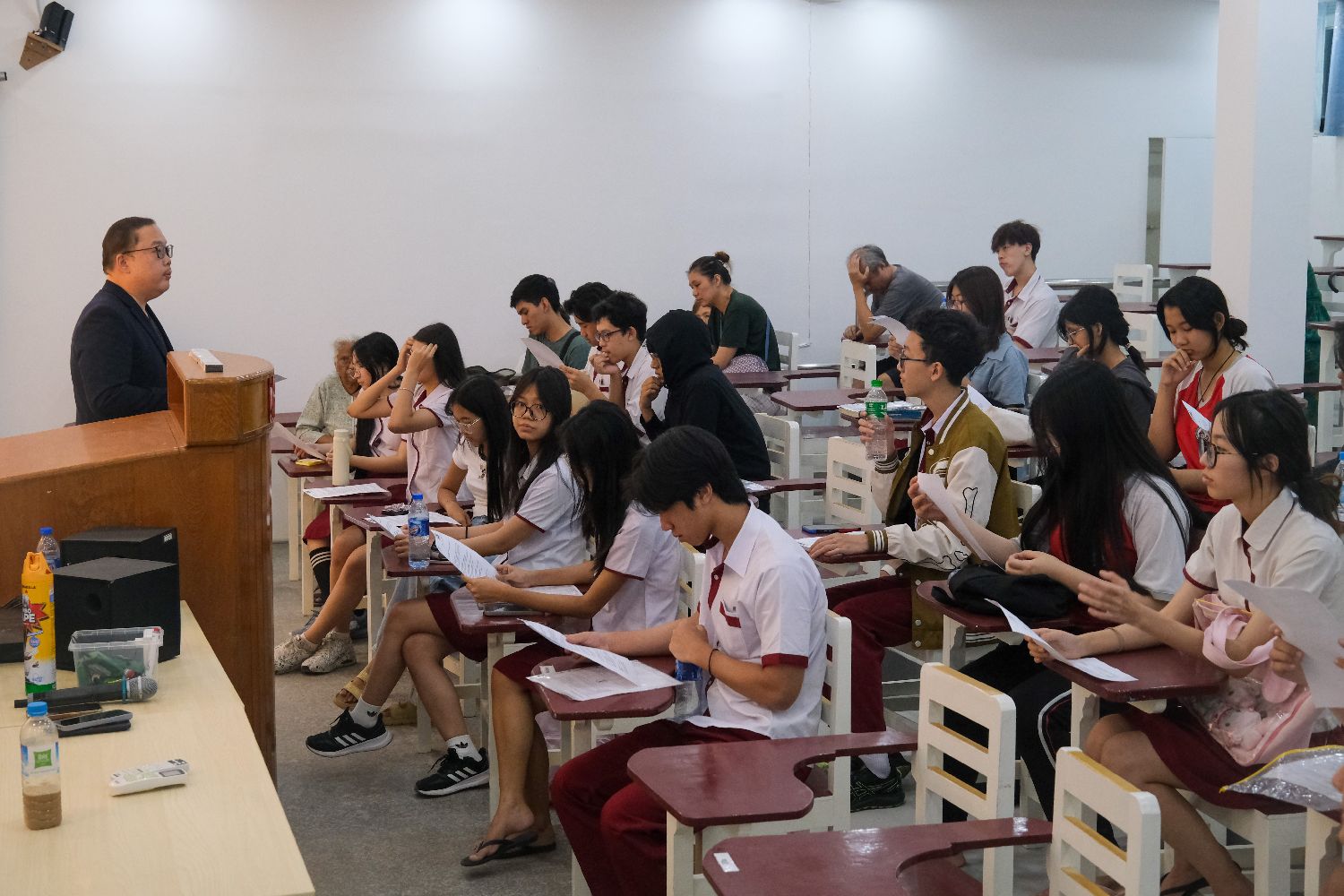 当地时间4月2日,缅甸曼德勒昌华中文学校的学生们在地震后有序恢复考试。(图片来源:中新社)