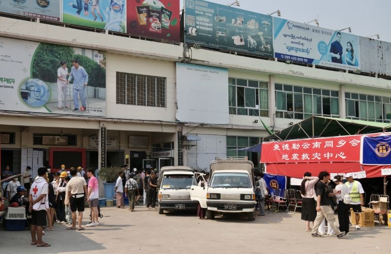 当地时间3月28日缅甸发生7.9级地震后,位于地震重灾区曼德勒市中心的云南会馆成为当地临时地震救灾中心。这里聚集着来自中国内地的救援队伍和由当地学生组成的志愿者团队。