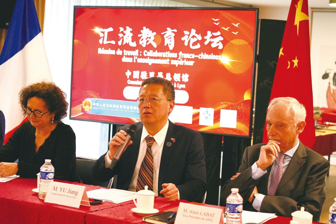 驻里昂总领事于江宣读驻法大使邓励贺信,指出作为东西方文明的重要代表,中法两国一直以来在教育领域保持密切合作,从政府到民间、从大学到中小学、从学生交流到教师互派,各方面合作不断发展。2024年习近平主席访问法国期间,提出中法要加快人文交流“双向奔赴”。中法高级别人文对话机制第七次会议作为落实两国元首会晤共识、开启中法关系“新甲子”的首次会议即将举行,相信未来两国教育合作将不断深化,学生交流规模将继续扩大,人文交流将进一步丰富。当前世界进入新的动荡变革期,中法加强教育合作和人文交流具有特别重要意义。