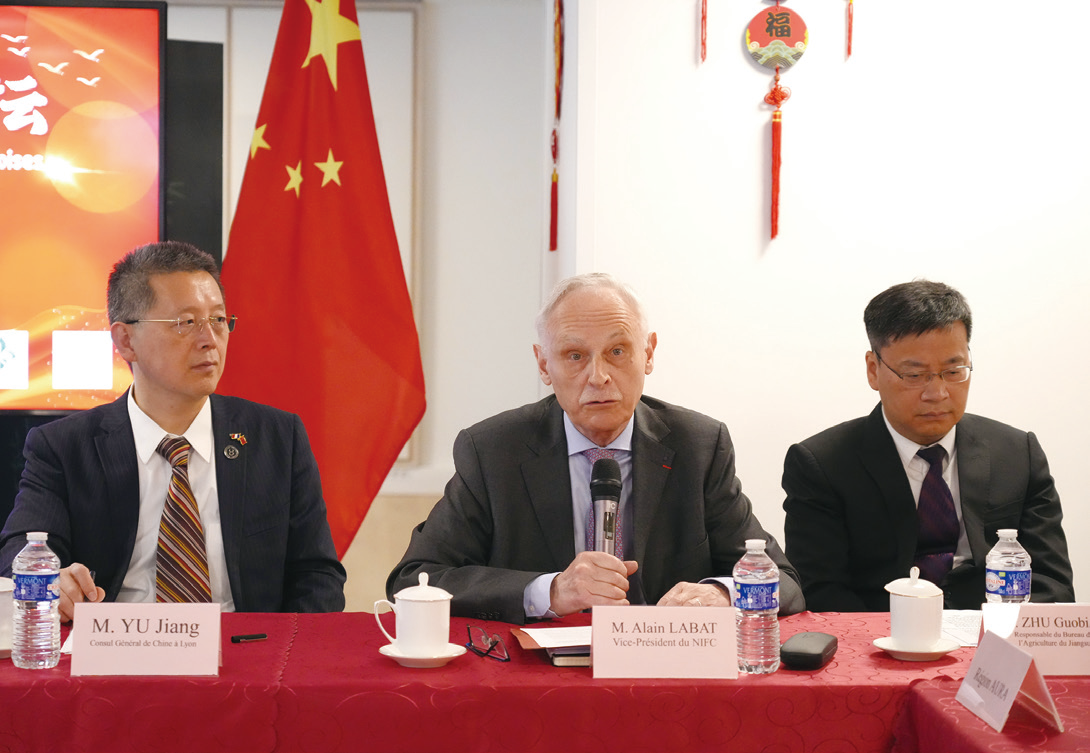 新中法大学协会副主席、法中友协联合会主席拉巴特(Alain LABAT)致辞中回顾了中法教育合作的悠久历史。在接受欧时采访时,他介绍了里昂新中法大学协会,以及其承载历史文化、促进交流合作的两个重要使命:它不仅保存和传承了里昂中法大学的独特中法学术交往史,并整合了本地区与中国在经济、教育、文化、协会及旅游领域的各类合作行动,也提升了大区在中国的认知度。拉巴特还表示,他十分期待接下来的汇流经济论坛和中国美食节,以及中方经济、科技及高等教育领域代表团的来访。
