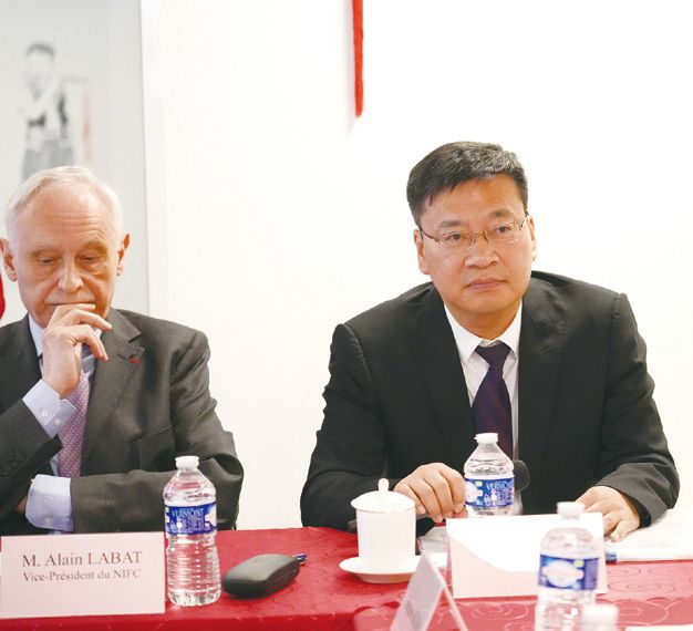 新中法大学协会副主席、法中友协联合会主席拉巴特(中)致辞。