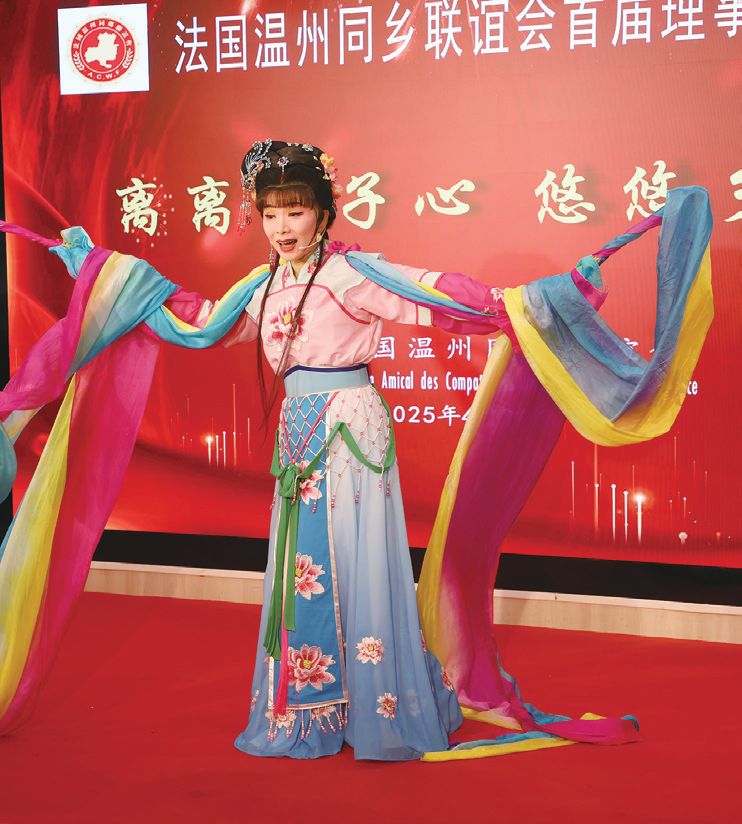 就职典礼进行期间,法国温州同乡联谊会秘书长余约西宣读了温州市归国华侨联合会发来的贺电,受邀出席活动的法华作家协会常务副主席吴秦博士现场推介了自己的新书《我在法国打官司》。现场还进行了戏曲文艺表演。