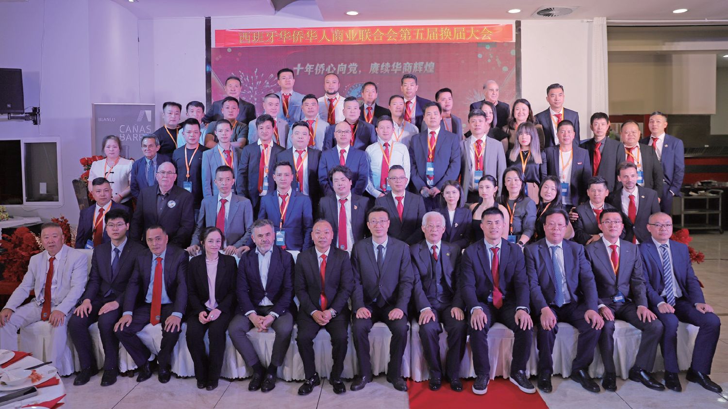 西班牙华侨华人商业联合会成员与主要嘉宾合影留念。