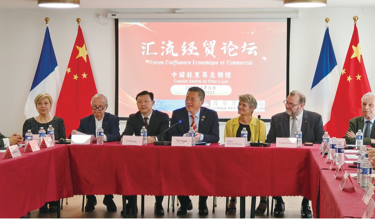 【本报讯】2025年5月15日,中国驻里昂总领馆和改革开放论坛联合举办首届汇流经贸论坛。于江总领事出席并致辞。南京市委副书记李佰平、里昂大都市副主席德罗曼、里昂工商会主席瓦伦丁、里昂六区副区长布伦、奥罗阿大区议会代表格拉维耶尔、新中法大学协会副主席拉巴特,以及改革开放论坛学者、在法中资企业代表等近百人参会。