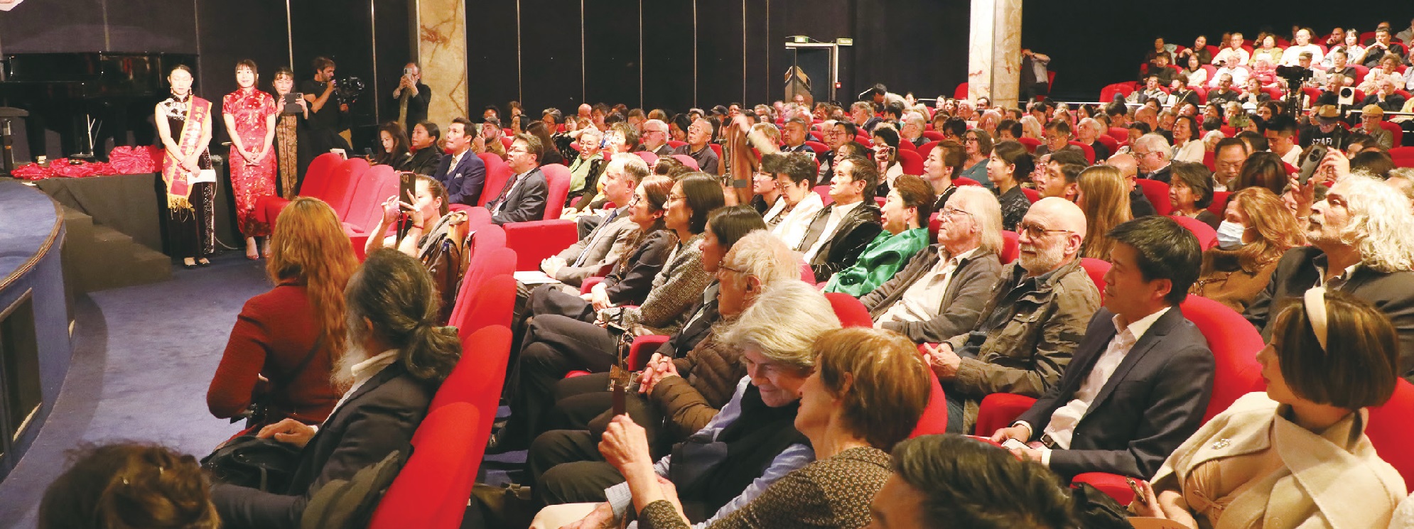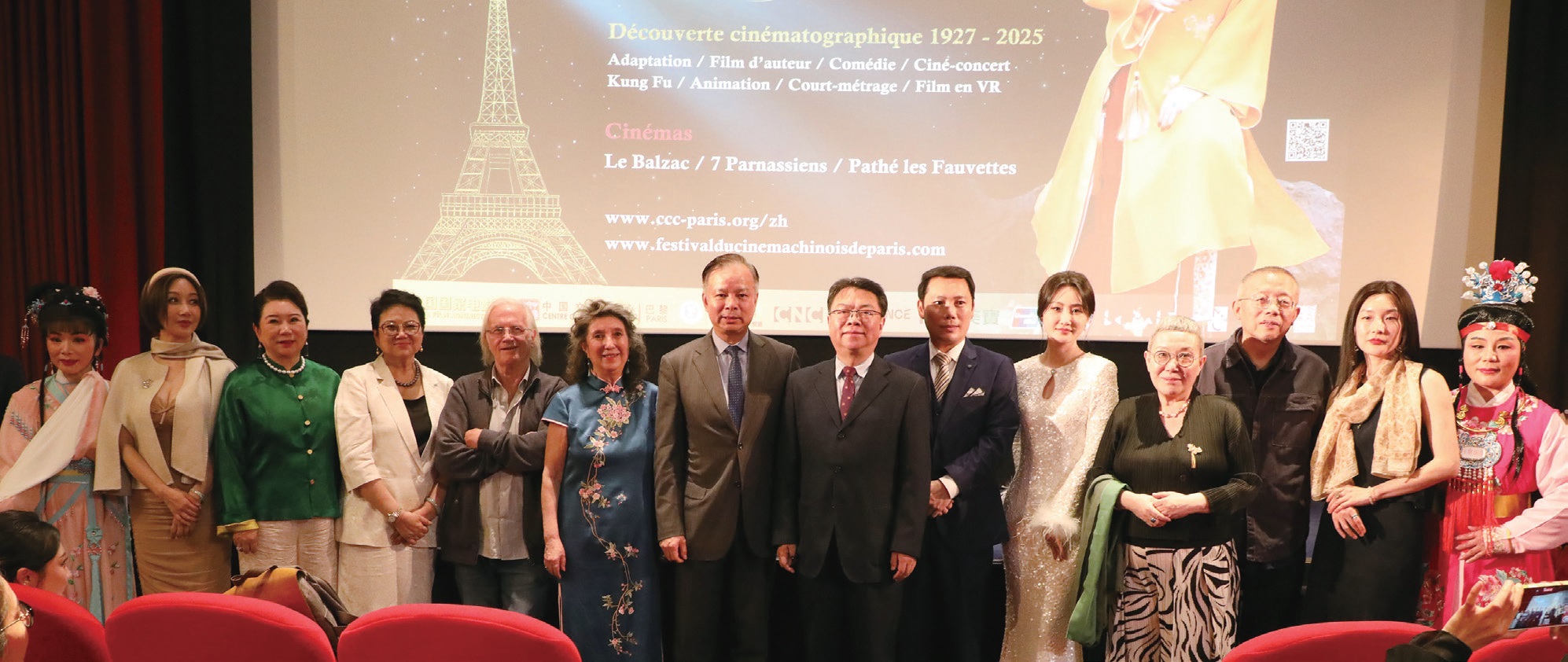 【欧洲时报记者黄冠杰巴黎报道】第16届巴黎中国电影节开幕式5月26日在巴黎中国文化中心举行。本届电影节致敬世界电影诞生130周年、中国电影诞生120周年。开幕式电影选择在巴尔扎克影院放映了由胡玫导演的《红楼梦之金玉良缘》。本届电影节以“文学改编”为主题,在为期两周的电影节期间,将展映19部中国电影,呈现中国影像的独特叙事魅力,让法国观众感受到中国电影人的真挚情感。中国驻法大使邓励为电影节发来贺词。中国驻法使馆陈力公使,中国电影局副局长陆亮,巴黎中国电影节主席高醇芳、执行主席王萌、荣誉主席菲利普·穆伊尔(Philippe Muyl),电影节推广大使林鹏,导演胡玫、王超、刘苗苗、宁敬武、戴玮等,电影节期间展映电影《红楼梦之金玉良缘》剧组、《孔秀》剧组、《极地彩虹》剧组、《带彩球的帐篷》剧组、《柳浪闻莺》剧组、《唐宫夜宴》(中国首部XR虚拟现实影片)等主创人员代表出席了电影开幕首映式。