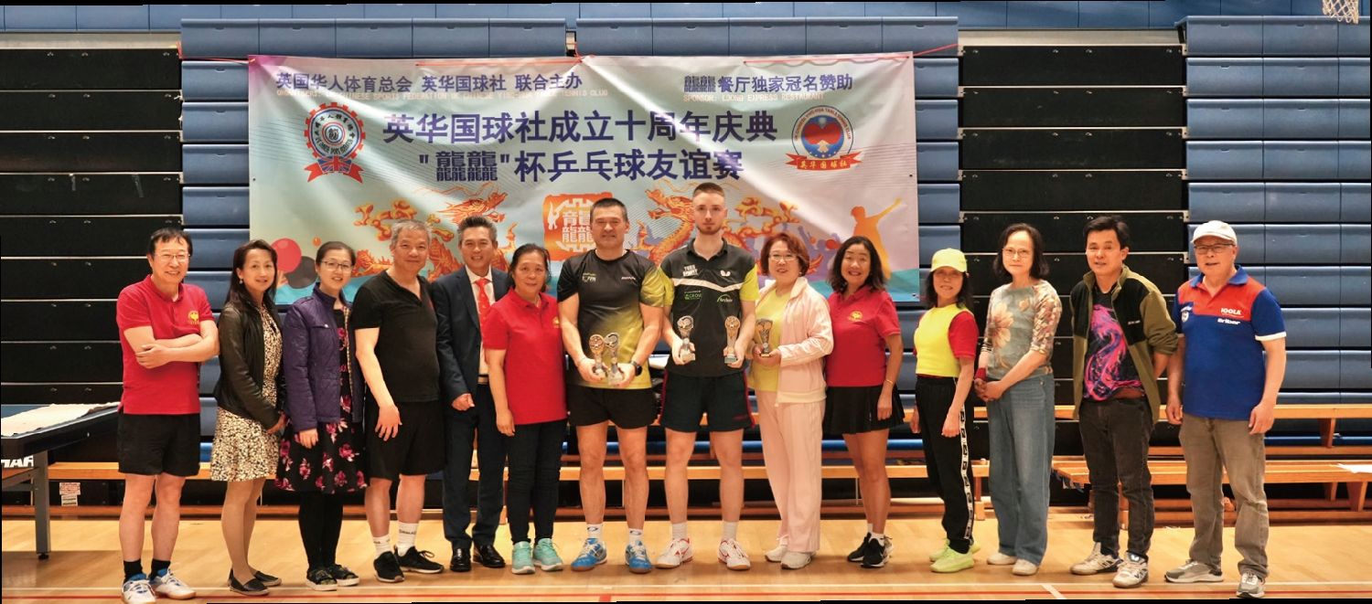 【欧洲时报季欧哲综合报道】5月25日,英华国球社联合英国华人体育总会,在伦敦Morpeth Table Tennis Club隆重举办了“英华国球社成立十周年庆典暨‘龘龘’杯乒乓球友谊赛”。本次赛事吸引了来自全英各地的近百名华人球友及英国本土乒乓球爱好者参加。