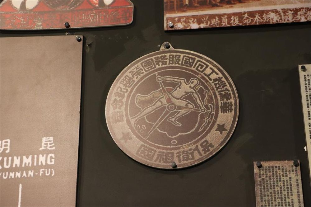机工们胸前都会佩戴“华侨机工回国服务团荣誉纪念章”。展柜中即陈列着一枚泛着暗哑光泽的徽章。林家豪指点着上面的图案说,齿轮中央交叠的青年与螺旋桨,象征着机工与卡车间的一种生死契约。