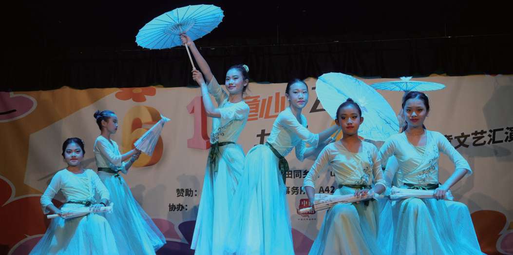哆来咪文化艺术学校舞蹈表演《雨涧春行图》。(图片来源:本文图片均由欧洲时报记者祝融摄)