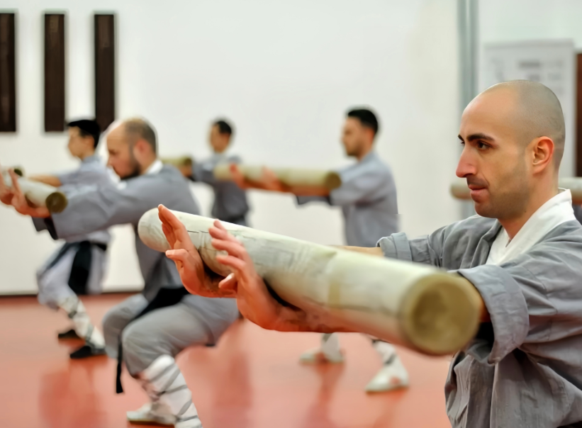 学员们在意大利禅武联盟训练基地练武。