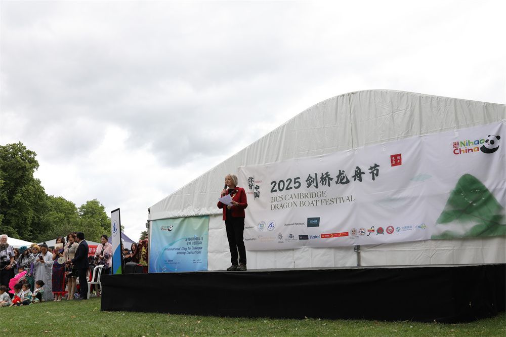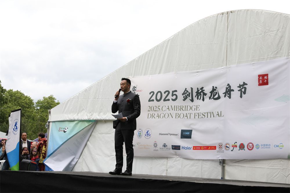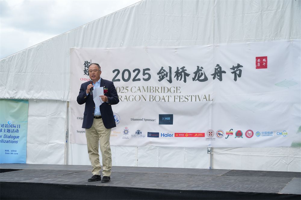 活动现场嘉宾云集、精彩纷呈。联合国前秘书长潘基文特别录制视频致贺,称赞龙舟起源于纪念爱国诗人屈原的古老仪式,是中华文化的瑰宝,承载的“团结、坚韧、卓越”精神正是全球和平合作的微观镜像。他高度评价剑桥龙舟节在促进文化交流、彰显包容多元方面的意义,呼吁以文化为舟,共筑人类命运共同体。