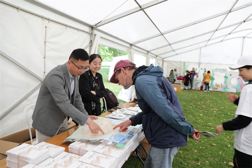 剑桥当地市民和中国驻伦敦旅游办事处同事交流过往中国旅游经历。