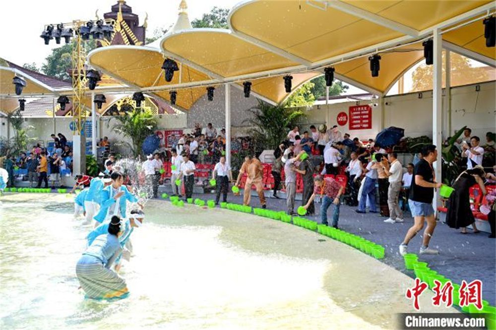 第21届东盟华商会举办期间,嘉宾体验泼水活动。(图片来源:主办方供中新网)