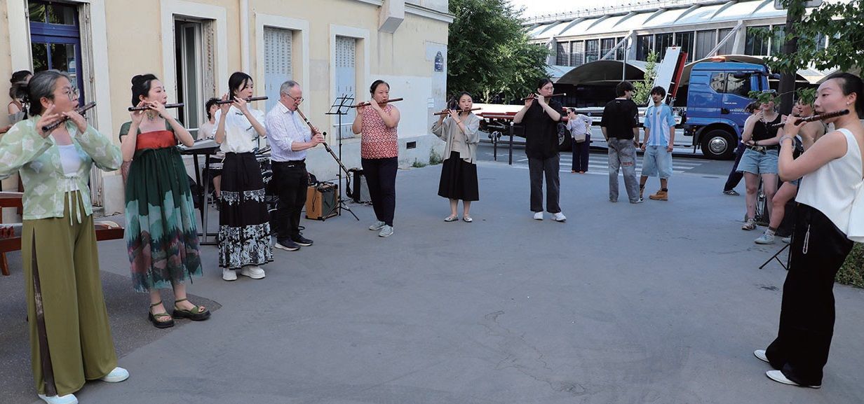 【欧洲时报记者黄冠杰巴黎报道】6月21日适逢中国夏至与法国国家音乐节。在巴黎13区离国家图书馆不远的欧洲最大的科创孵化中心Station F文化区,由蓝书坊出版中心(CLEF协会)组织了别开生面的“时光交汇”演出,邀请中国民族器乐爱好者及法国大学生摇滚乐队同台演出,向观众介绍中国器乐,成为法国音乐节交响中独具特色的一章。当天蓝书坊还推出了旅法陶艺家邓欣南作品展“私制神明”,向大家展示了中国传统陶艺与现代理念碰撞的无声交响。
