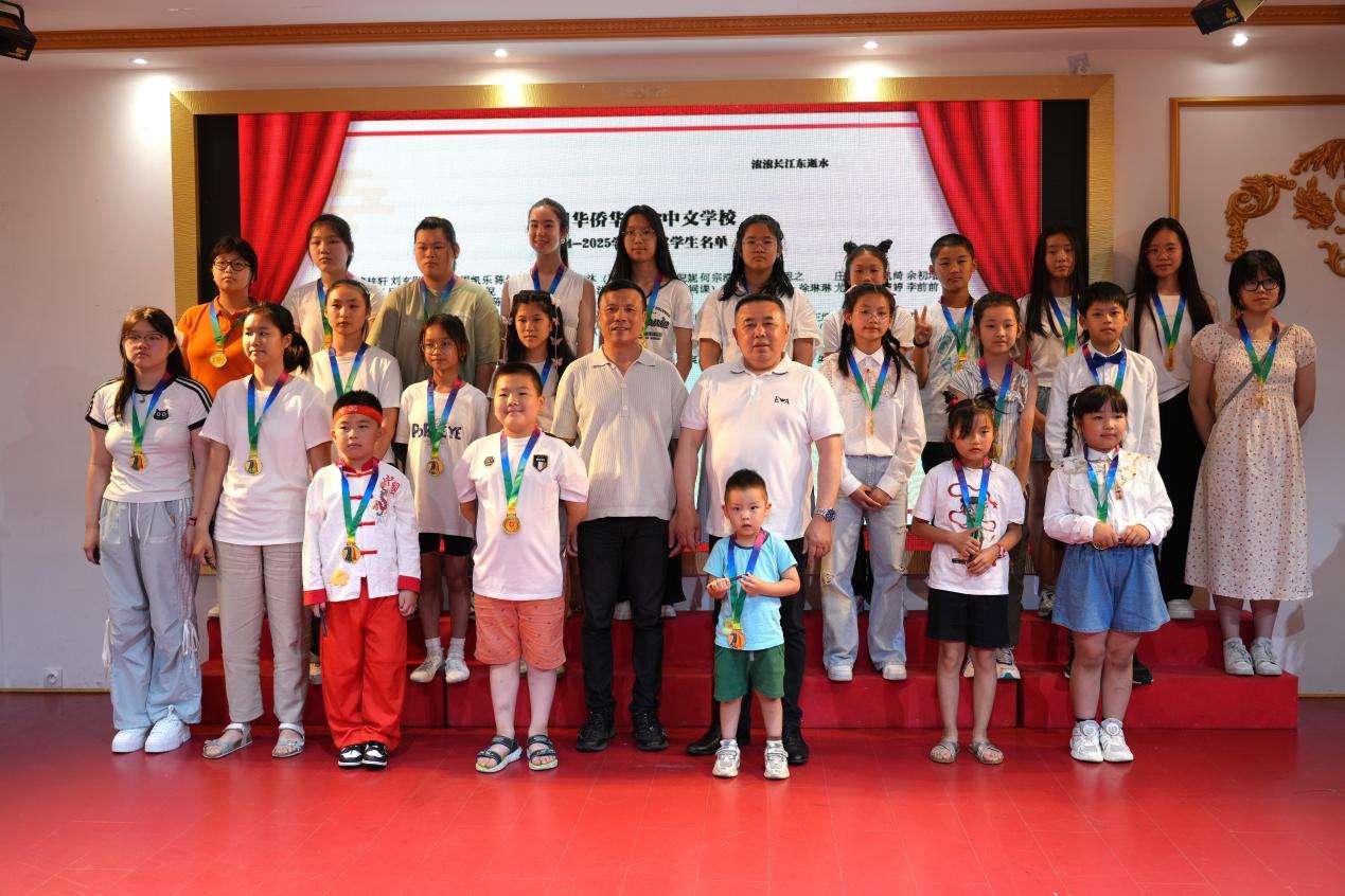 在颁奖环节,法国华侨华人会领导代表们分别与获得优秀奖、进步之星、鼓励奖,以及一、二、三等奖的学生们合影留念。