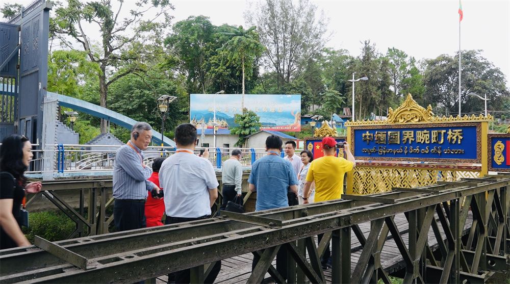 一条蜿蜒的界河将山谷分成两半,东北为中国畹町,西南是缅甸棒赛。河上并排架设两座桥,新桥上装载芒果、甘蔗、啤酒的货车来来往往;旧桥旁的纪念碑刻有“滇缅、中印(史迪威)公路交汇点”字样,游客排队与之合影留念。