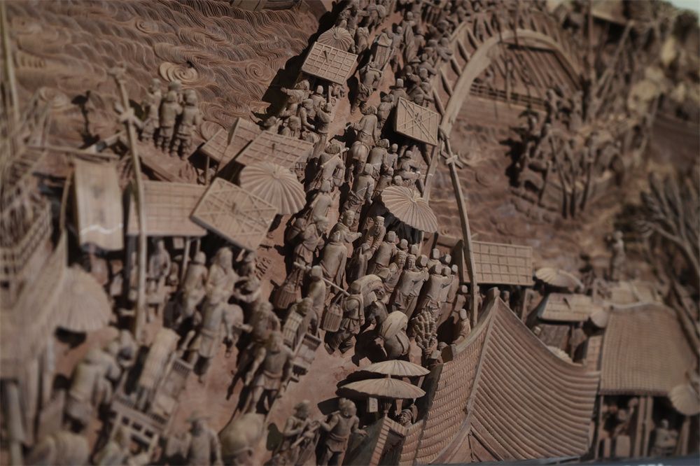 辜柳希的潮州木雕作品《清明上河图》(局部)。