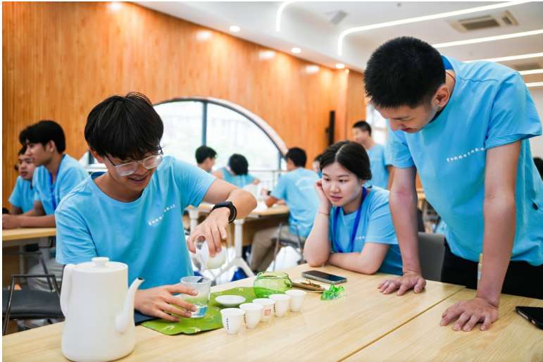 2025年7月,在浙江青田,华侨华人新生代体验茶文化。(图片来源:中新社)