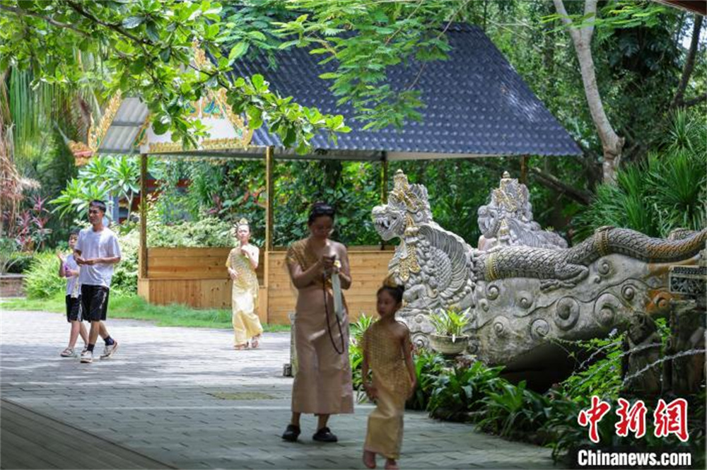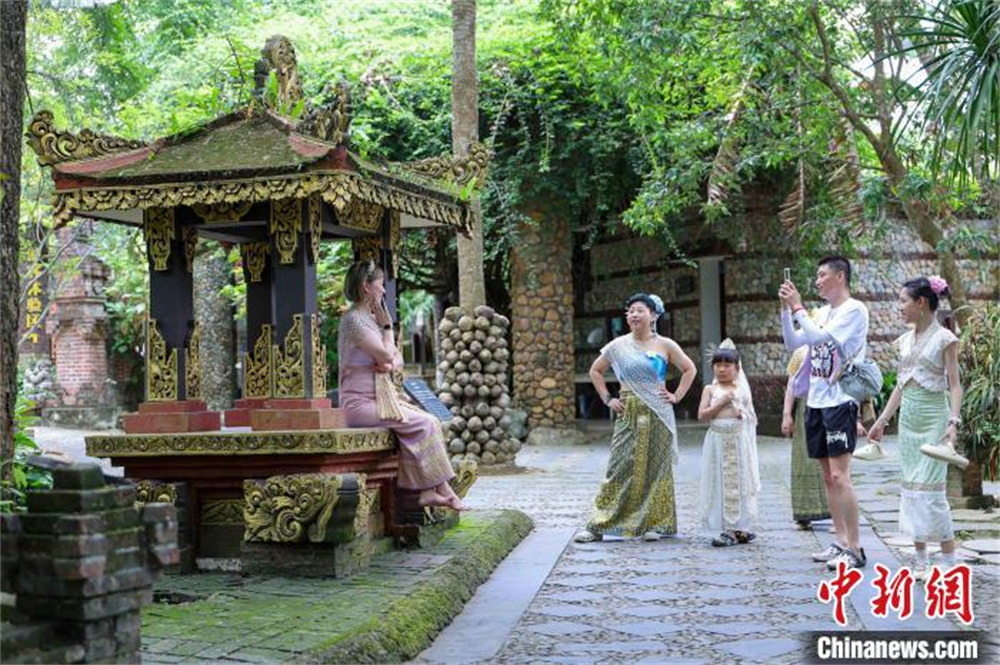 山门、浮雕、神龛、瑞兽……东南亚风格建筑、装饰随处可见,鲜艳浓郁的色彩充满了异域气息。学上几句简单的印尼语、观看热情的印尼风情舞蹈、换上异国风情服饰“打卡”,几乎成为游客逛景区的标配。