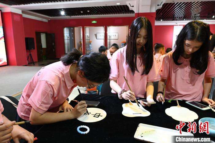 7月15日,61名华裔青少年来到内蒙古自治区呼和浩特市美术馆,学习书法,感受中华文化的独特魅力。