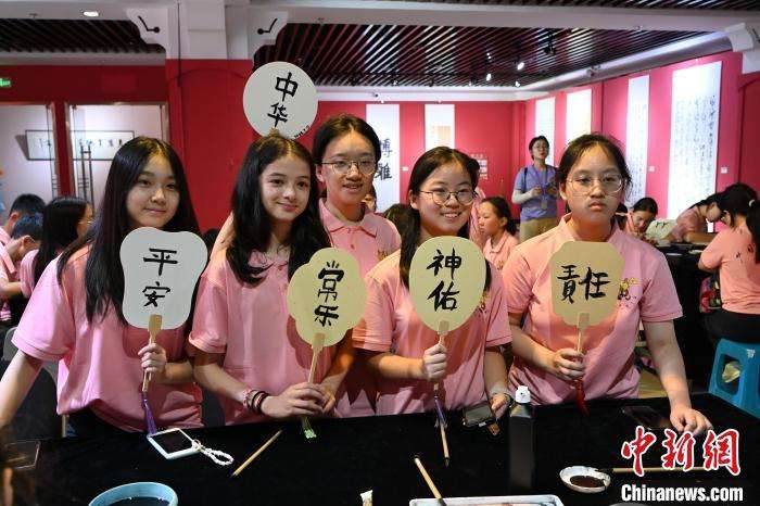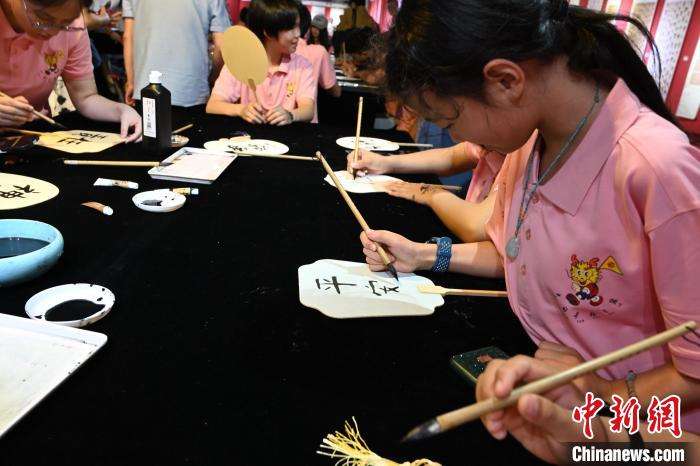 7月15日,华裔青少年学习书法。(图片来源:本文图片均来自中新网)