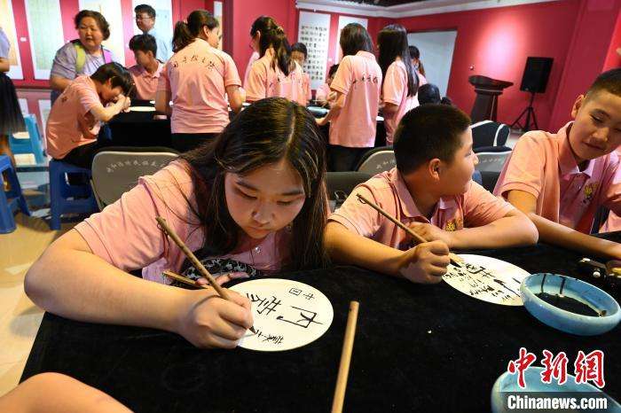 华裔青少年在内蒙古学习书法 体验传统文化感受墨韵之美