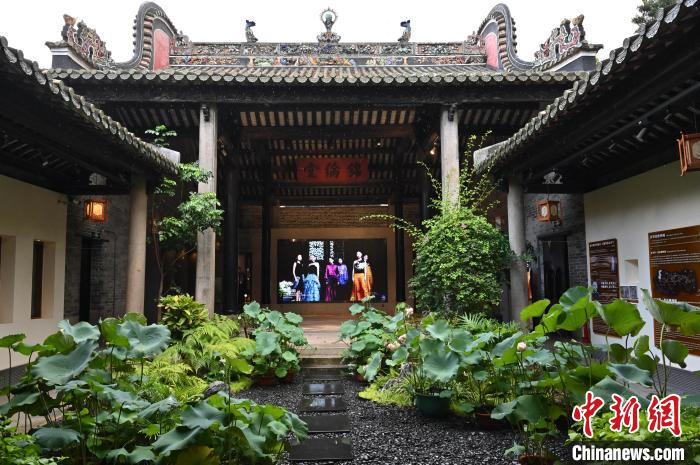7月16日,广州市锦纶会馆播放的香云纱时装秀片段。(图片来源:本文图片均来自中新网)