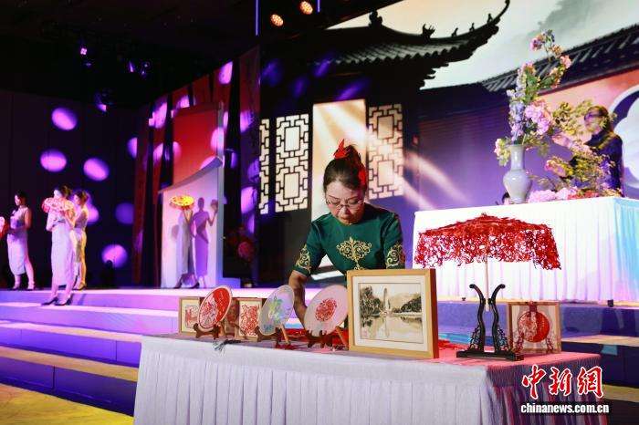7月19日,诗会中展示插花、剪纸等非遗技艺。