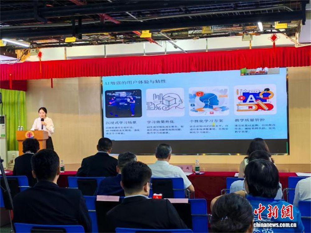 华校校长在论坛上分享了AI赋能华教的前沿实践。(图片来源:中新网)