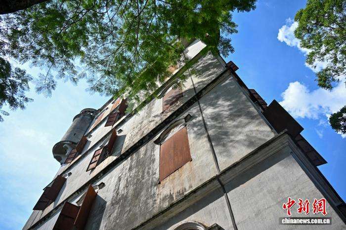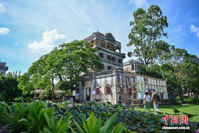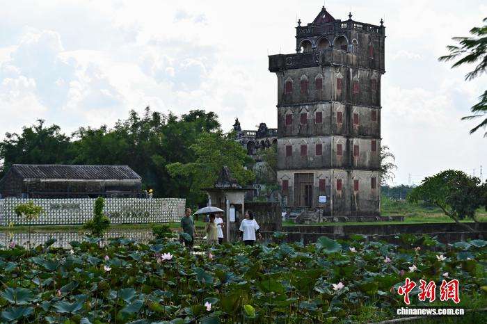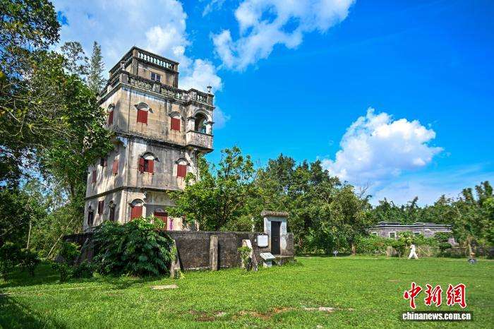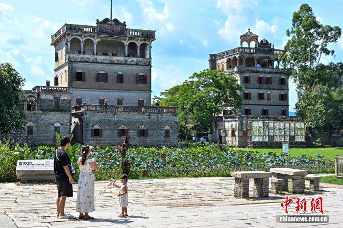 7月24日,正值中国暑期,位于广东江门开平自力村内的一座座别具侨乡特色的碉楼吸引游客参观游玩。
