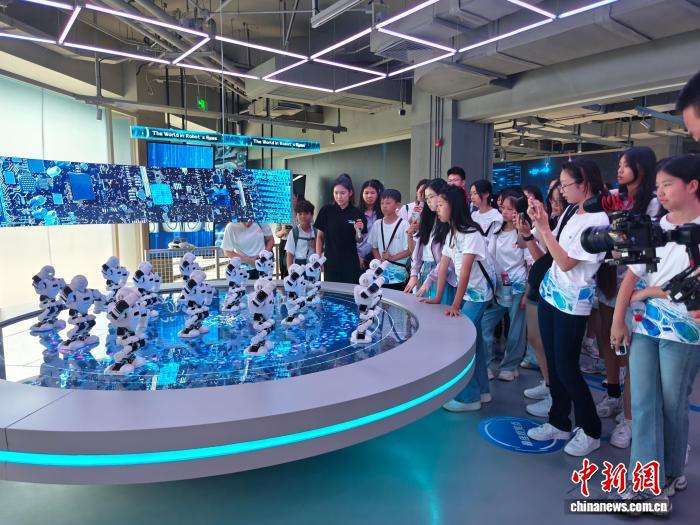 中新网报道,作为北京首个全品类机器人展示中心,机器人大世界汇聚海内外先进的机器人产品,以“机器人展示+应用体验”的方式,形成与世界机器人大会常态联动的创新展示平台。走进展厅,海外华裔青少年们用手指触碰从天而降的机器巨手,开启探索未来世界的体验。