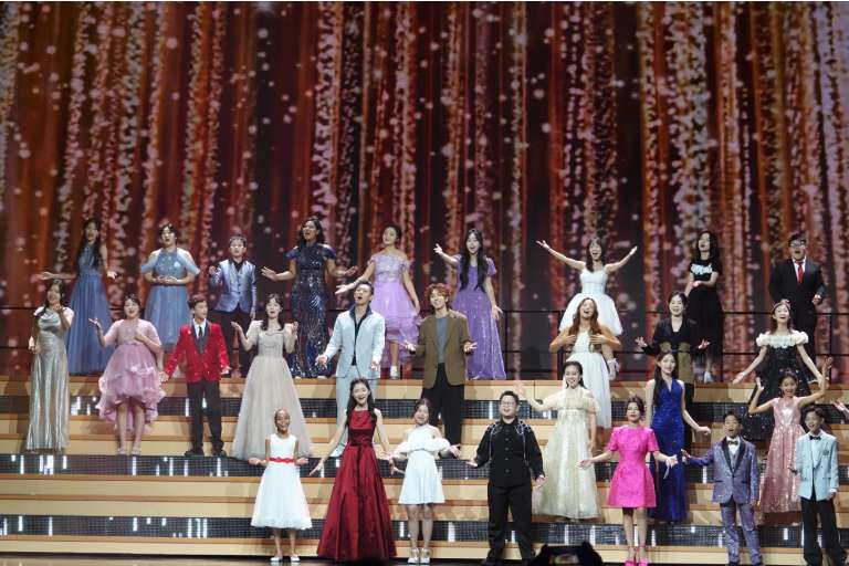 中新社报道,颁奖晚会在本届参赛选手共同演唱的主题曲《欢聚水立方》中拉开帷幕。参加2025年华裔青少年音乐夏令营的近百名营员与国潮女团元曦、摇滚歌手张淇、乐队组合“水木年华”、青年歌手叶泽浩等携手演唱了《上春山》《少年》《飞奔的时间》《就算没有很伟大的梦想》《小城夏天》等歌曲。