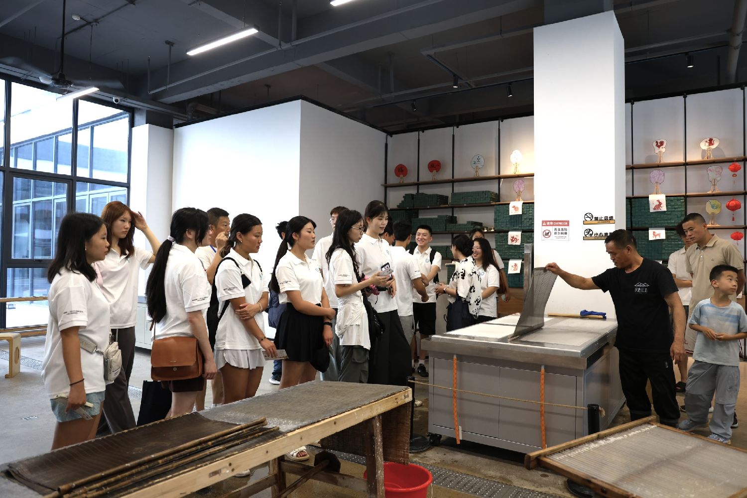 华裔大学生走进安徽宣纸文化艺术长廊体验制作技艺