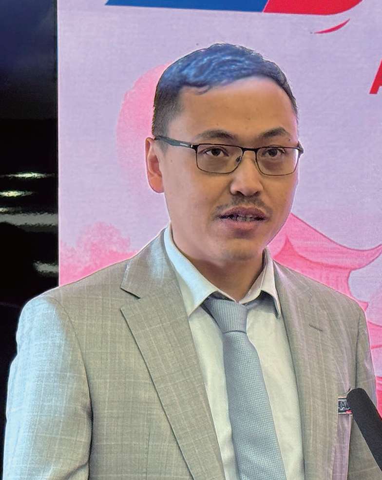 蔡君柱代表侨界祝贺。