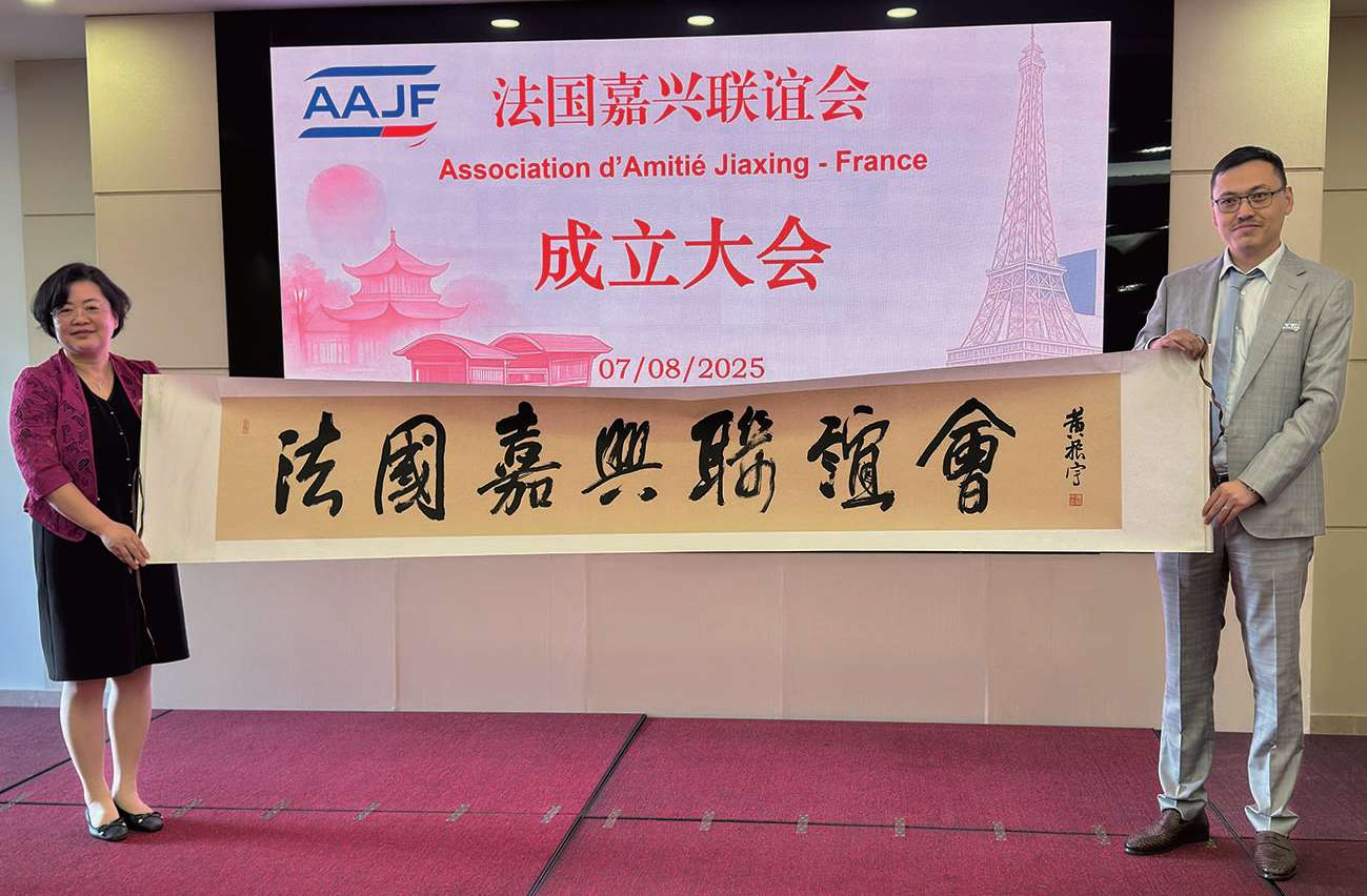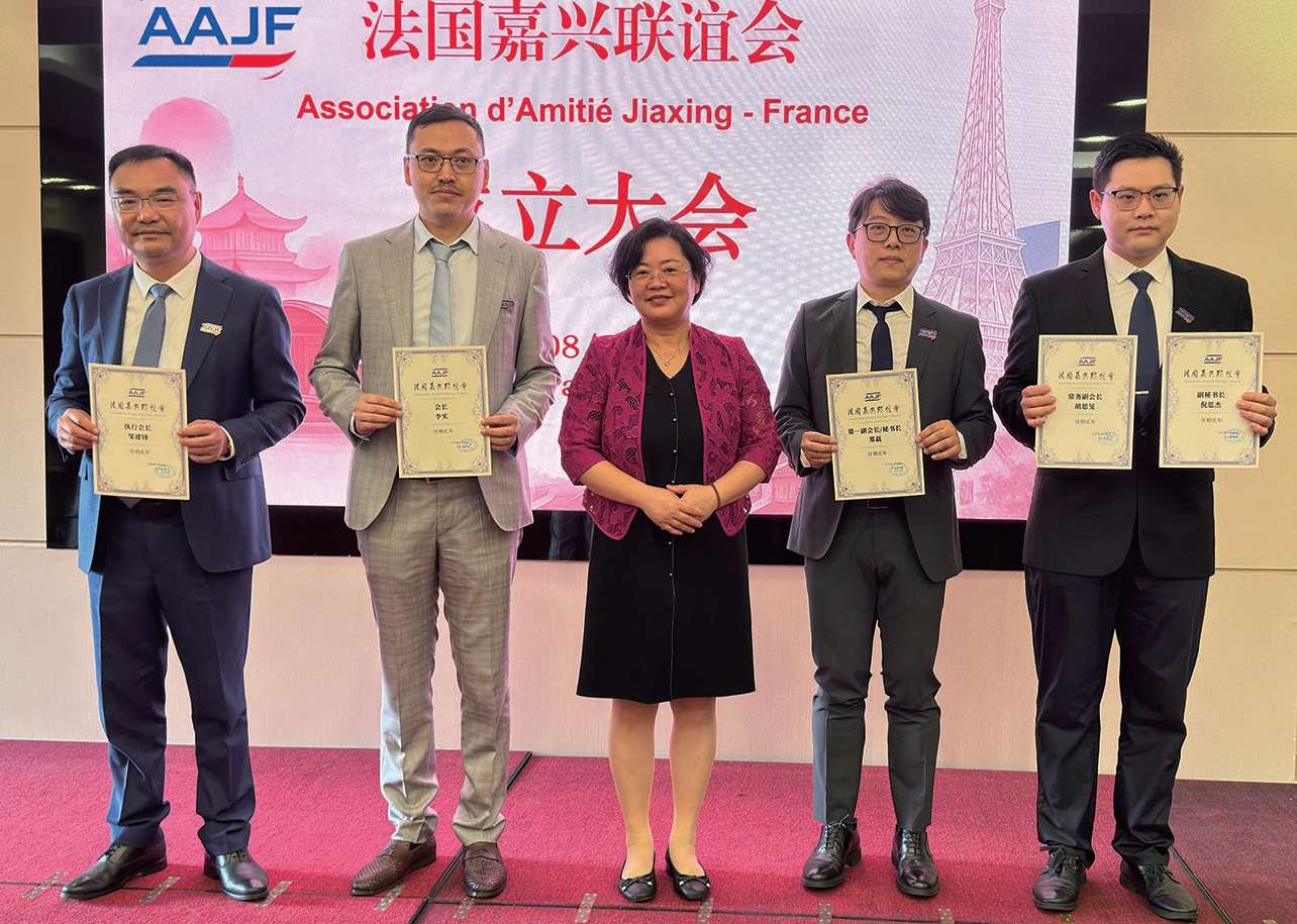 【欧洲时报记者黄冠杰巴黎报道】在法国华侨华人会主席蔡君柱、法国青田同乡会会长周伟、欧洲青田同乡总会会长陈少奇,浙江嘉兴外办副主任李初,嘉兴市文联二级调研员、嘉兴市南湖国画院名誉院长陈天英,嘉兴市归国华侨联合会秘书长、联谊权益与经济科技部部长李勇军,嘉兴市南湖区新丰镇党委书记丁能以及来宾的见证下,随着浙江省嘉兴市委统战部副部长、市侨办主任、市侨联主席宗晓慧与李实会长为“法国嘉兴联谊会”揭牌,一个以来自法国各地的嘉兴背景人士,包括长期生活工作的侨民、曾在嘉兴学习工作过的专业人士,以及积极参与中法交流的青年力量组成的新的团体——法国嘉兴联谊会诞生,法国侨界又增添了新的力量。8月7日在巴黎华天中国城大酒店举行的成立仪式上,正率团在法访问的宗晓慧主席为首届理事会会长李实,第一副会长兼秘书长郑磊,执行会长兼国内联络人邹建锋,常务副会长胡思旻,副秘书长倪思杰等颁发聘书。