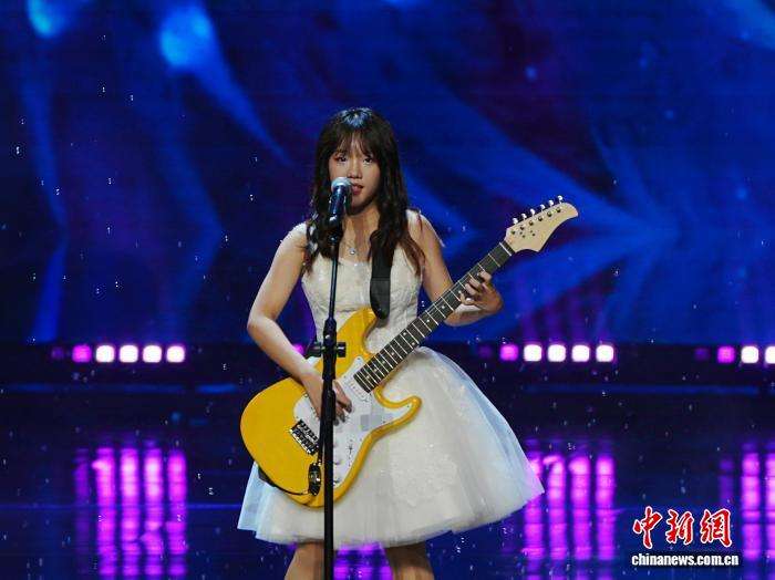 马来西亚华裔女孩林沛琁在8月8日举行的2025年“文化中国·水立方杯”中文歌曲大赛颁奖晚会上表演。(图片来源:受访者供图)