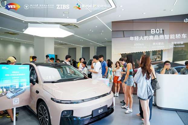 8月12日的参访中,学生们在零跑汽车展厅现场体验了汽车智能系统。产品展厅中,陈列着零跑汽车核心技术零件与工程师百人大合照。作为近年快速崛起的智能汽车品牌,零跑始终坚持核心技术自主研发,注重科技自主与创新。