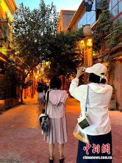 图为嘉宾在喀什古城打卡拍照。