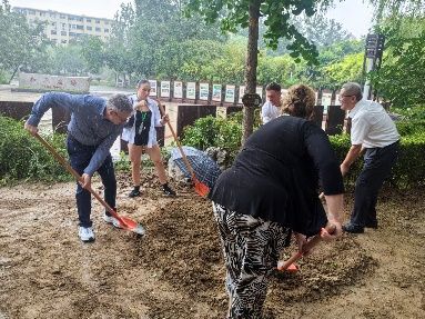 潍县集中营幸存侨民及侨民亲属与中方代表一起在潍县西方侨民集中营旧址博物馆,种下了一棵棵象征和平与友谊的树木。