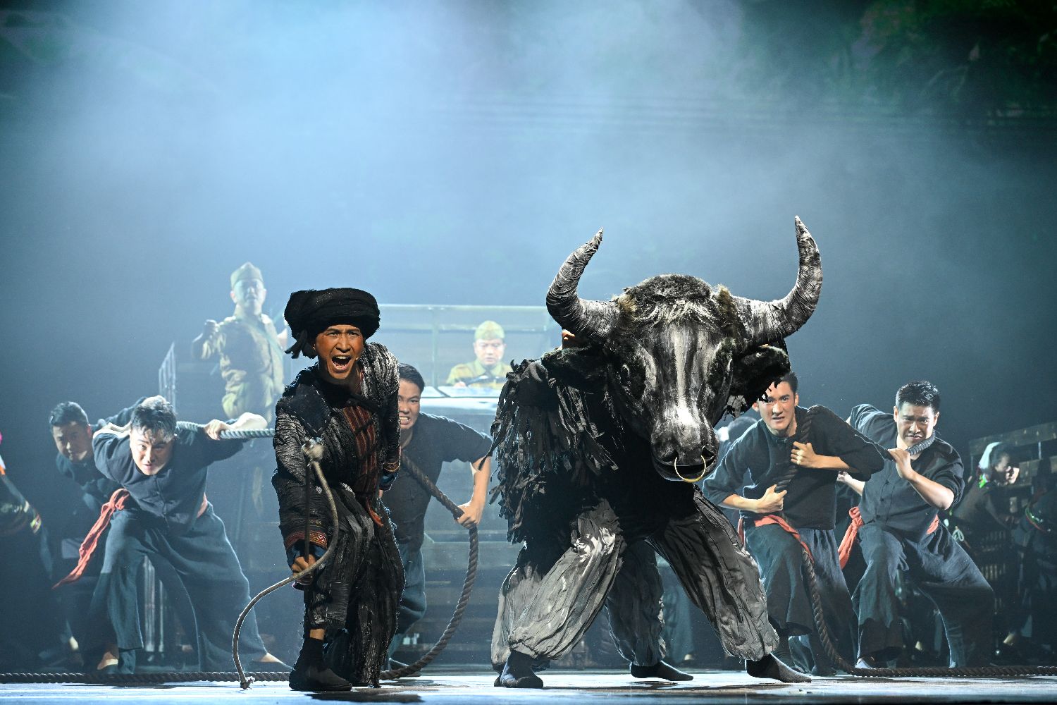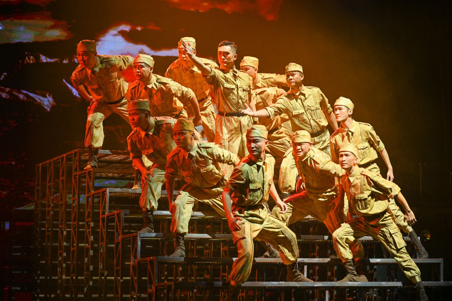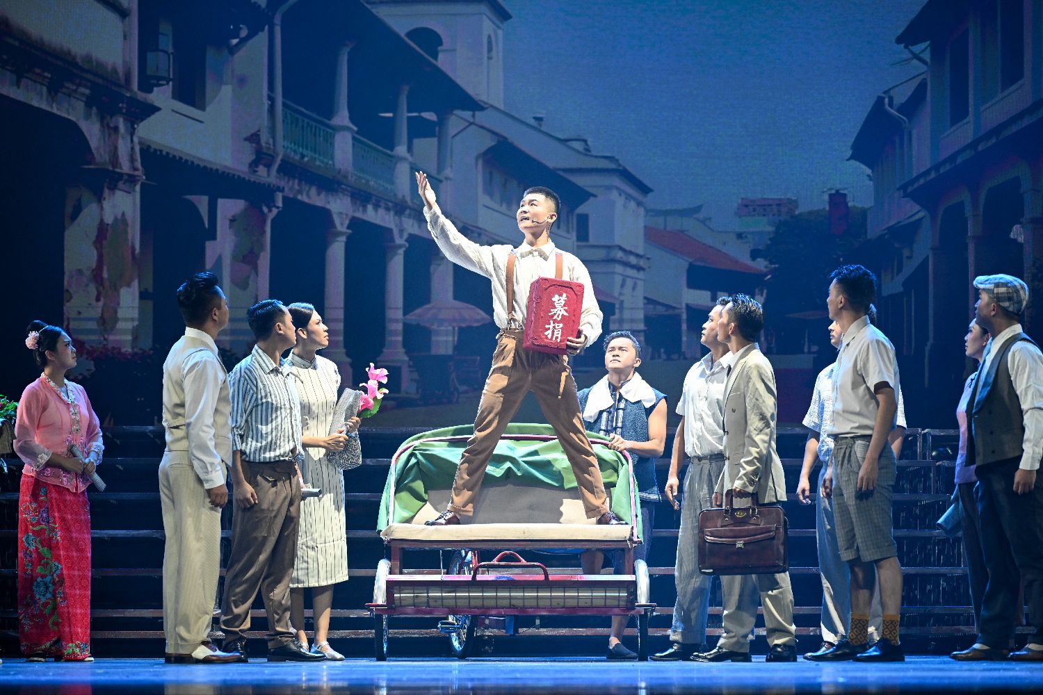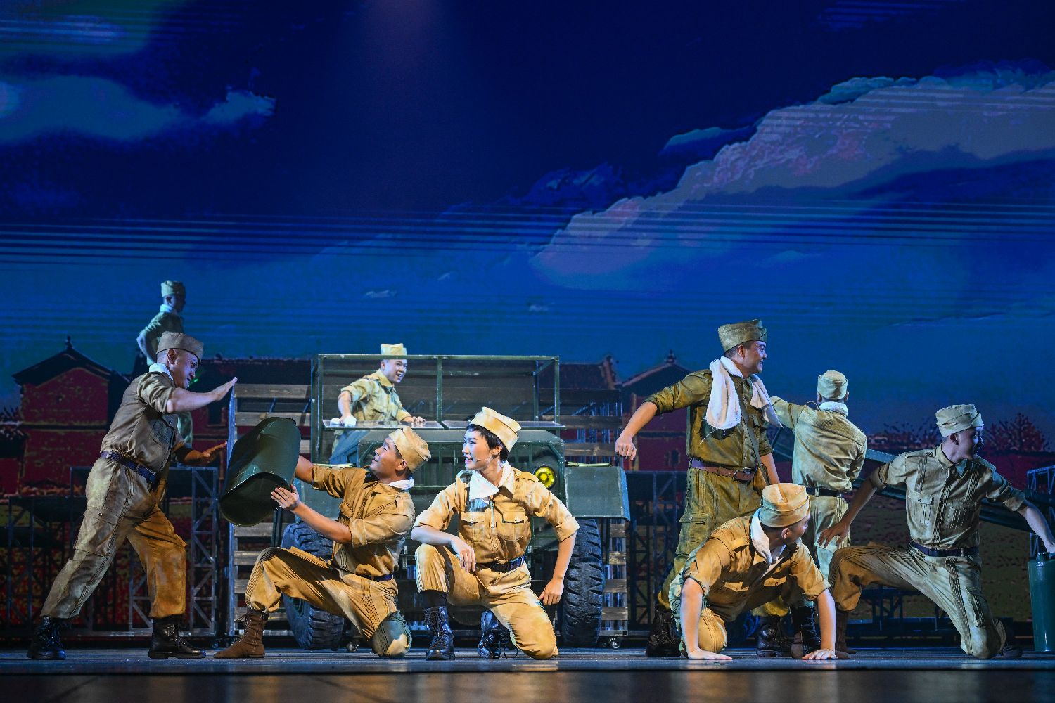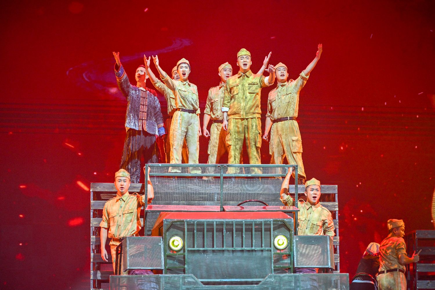 8月23日晚,以南洋华侨机工回中国抗战为题材的音乐剧《南侨花木兰》在云南省昆明市首演,再现80年前3200余名南侨机工舍家纾难、共赴国难的壮烈史诗。图为演员演绎南侨机工与云南当地民众携手奋战场景。(图片来源:本文图片均自中新社)