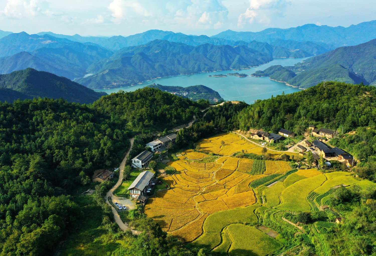浙江云和南山湖自然村稻田民宿群一景。(图片来源:杨勇供中新社图)