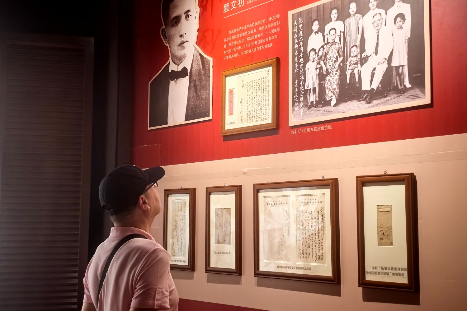 9月2日,观众在福建泉州华侨历史博物馆参观华侨抗战主题展览《中流砥柱——泉州华侨与南侨总会》。(图片来源:中新社)