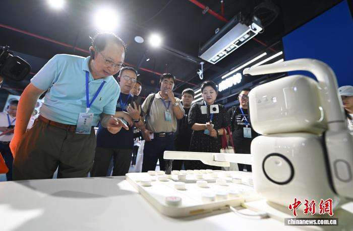 9月10日,海外华文媒体代表和下棋机器人“对弈”。