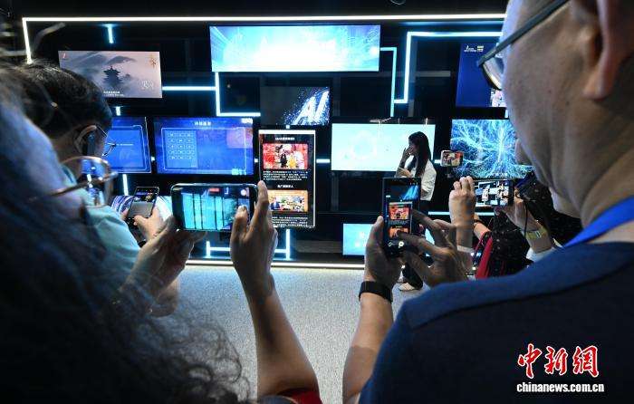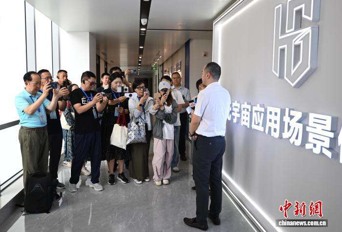 9月10日,海外华文媒体代表在元宇宙应用场景体验馆拍摄。(图片来源:本文图片均来自中新网)