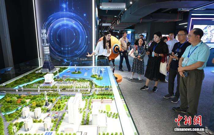 9月10日,海外华文媒体代表等参观零碳基站和智慧小区模型。