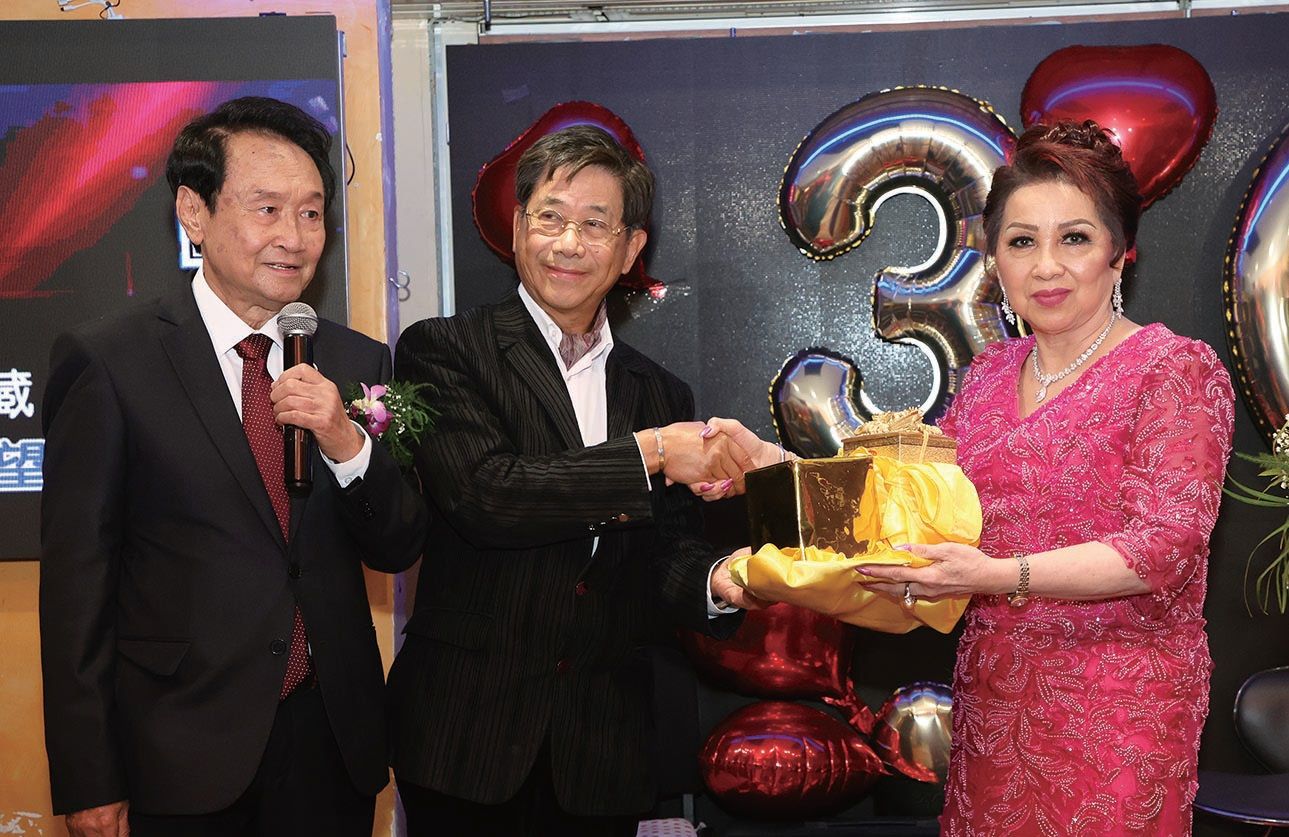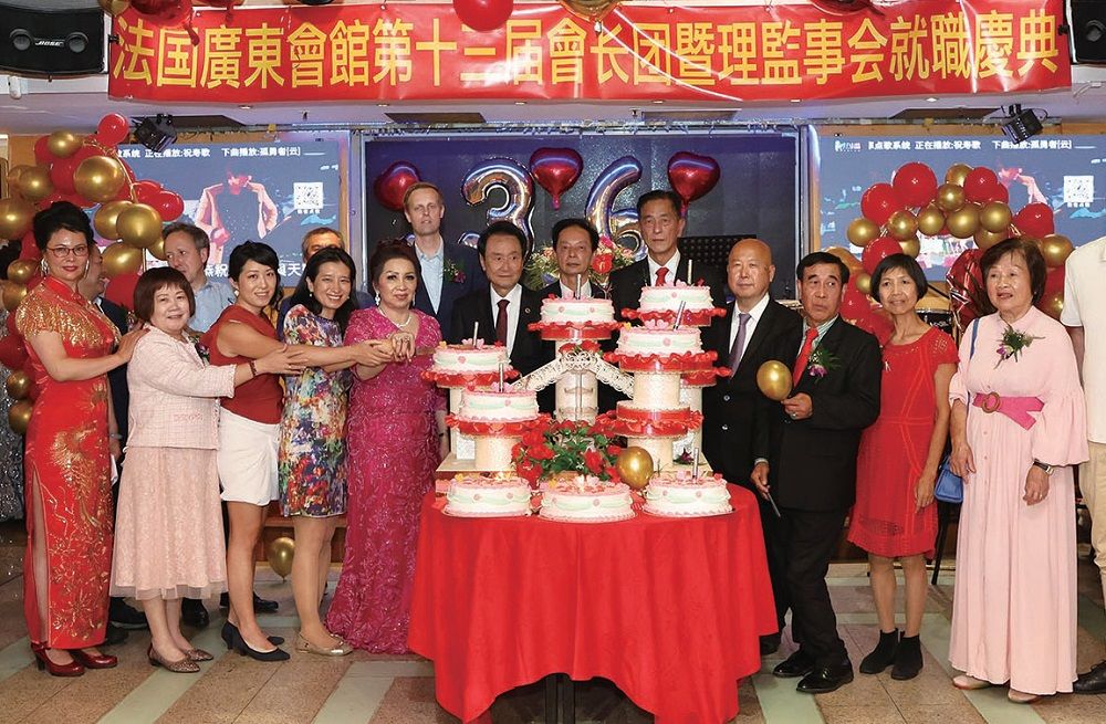 晚会进行期间,法国广东会馆永远名誉主席、选举筹备委员会主席黄志超向周陈秀英转交了会印,现场进行了热闹的舞龙舞狮,歌舞表演、京剧演唱、幸运抽奖等精彩纷呈的环节。周陈秀英与家人及第十三届会长团成员还共同切下为庆祝广东会馆成立36周年特别定制的蛋糕,现场气氛热烈愉快,大家载歌载舞,共同庆祝周陈秀英和第十三届会长团暨理监事会履新,并为法国广东会馆成立36周年送上祝福。