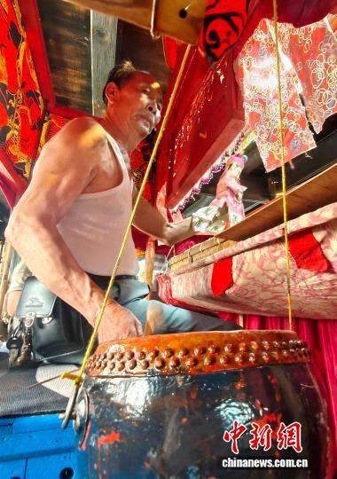 9月16日,福建省柘荣县富溪古镇布袋戏艺人正在为游客表演。