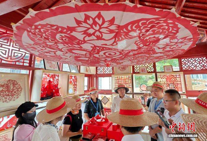 9月16日,海外华文媒体代表在福建省柘荣县靴岭尾村了解剪纸文创品。柘荣剪纸2009年作为中国剪纸组成部分,被联合国教科文组织列入“人类非物质文化遗产代表作名录”。该技艺以阳剪为主,阴剪为辅,风格鲜明,具有很强的地域个性,既保留了原始艺术淳朴、粗拙、刚健、浑厚的特征,又具有细腻、古雅、秀丽、柔美的艺术魅力。
