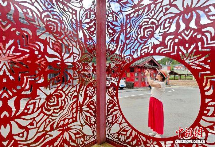 9月16日,日本《留学生新闻》总编辑龙丽华在福建省柘荣县靴岭尾村参观。在靴岭尾村,剪纸样式的房屋立面、窗花、灯笼、椅子等随处可见,宛如走进了一座露天的剪纸艺术馆,吸引不少游客前去参观。